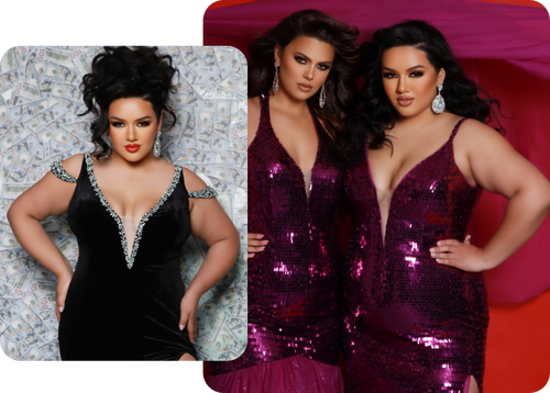 The original Collection that launched the business and earned me the honorary title of the “Fairy Godmother of Plus Size Prom”. An assortment of trendy Prom dresses with proven silhouettes to flatter the curvy teen.